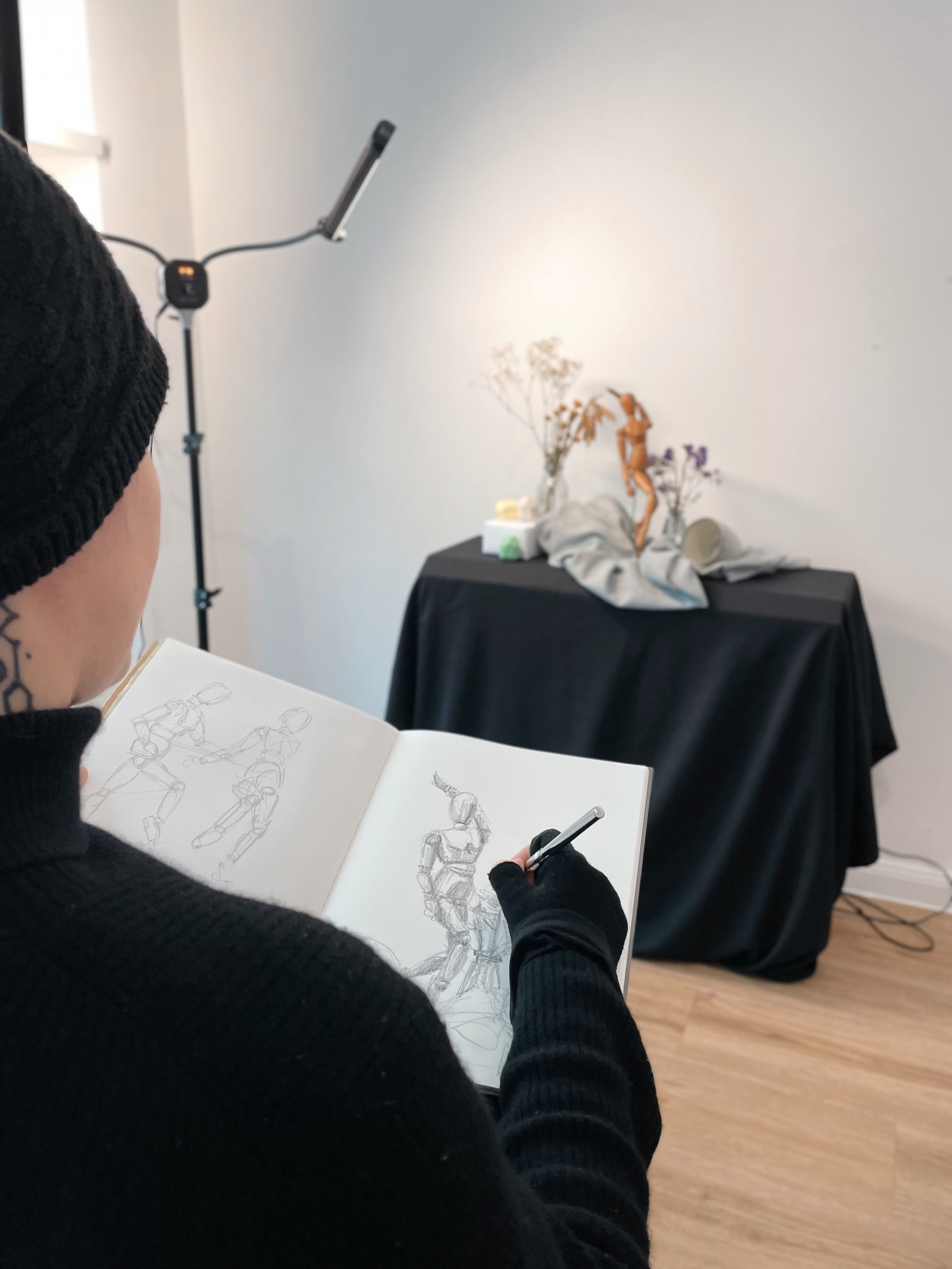 Aulas de desenho níveis: básico e intermediário (grafite, canetas, carvão, etc), começando do início de fundamentos de desenho, exercícios e práticas musculares (cerebro, olho, mãos), estudo de forma e volume, etc.